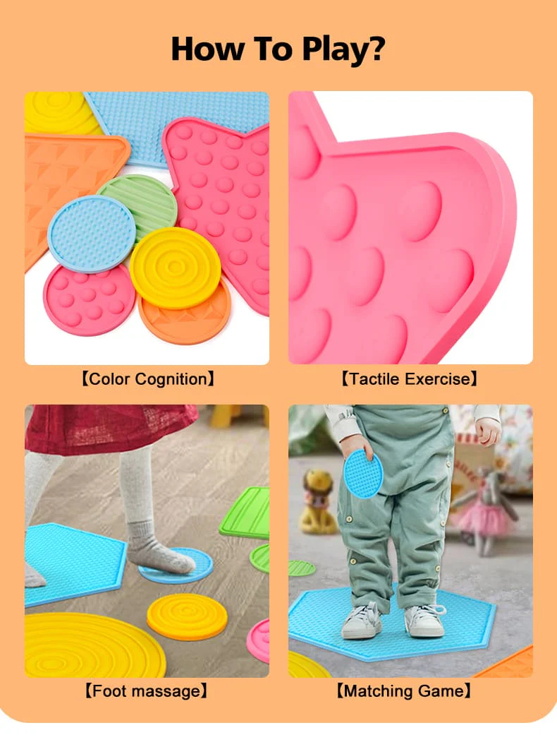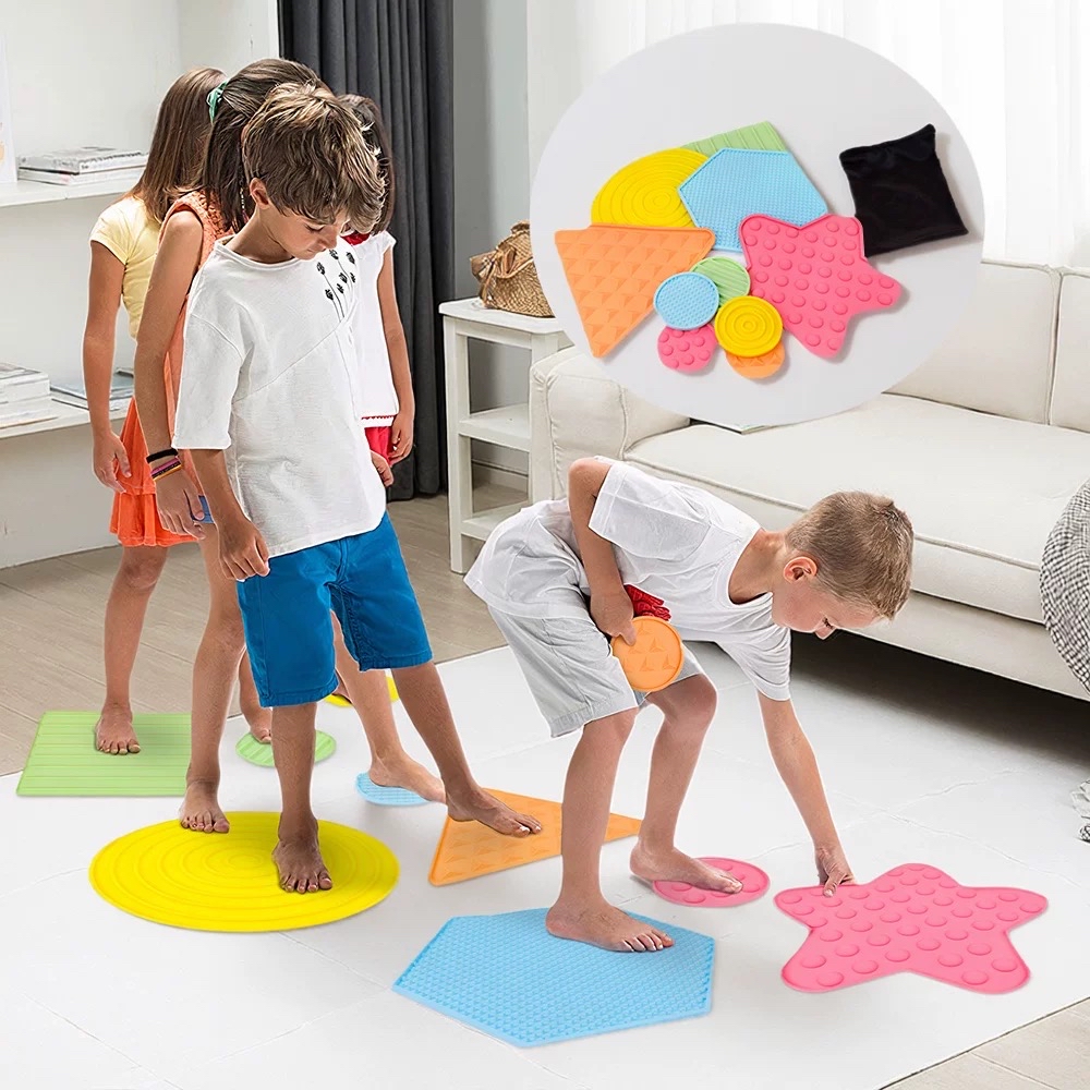 【練習平衡技能】——透過這些觸覺墊放在地板上,它們可以幫助兒童先入為主、平衡、協調、定位、姿勢和探索他們的觸覺。